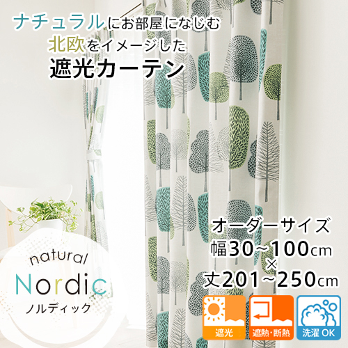 カーテン 遮光 オーダー 断熱カーテン 省エネ 遮熱 断熱 北欧 おしゃれ ナチュラル ノルディック 全8柄 幅30-100cm 丈201-250cm
