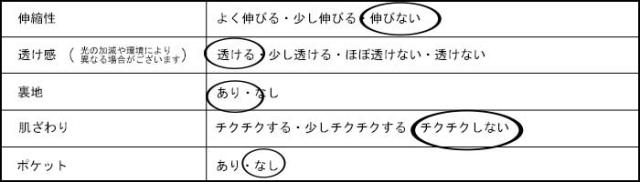 | 素材 | 綿70% ナイロン30% 裏地:ポリエステル100% |