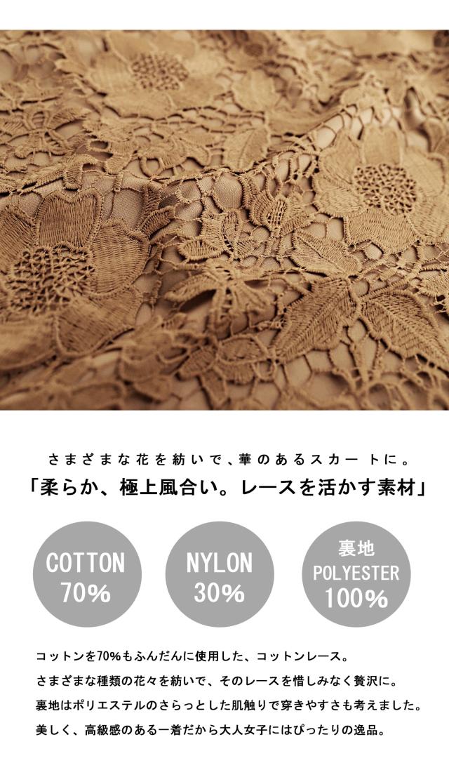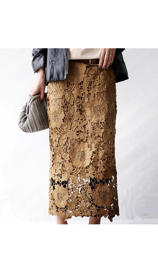 女性らしさ、華やかさを一瞬で引き上げてくれる、レースを惜しみなく贅沢に使用したスカート。