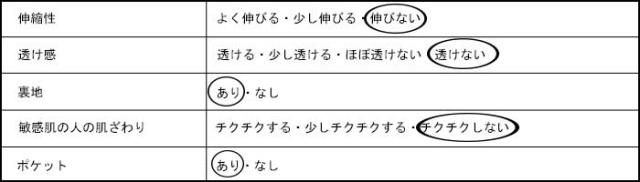 | 素材 | ポリエステル95% ポリウレタン5% 裏地:ポリエステル100% |