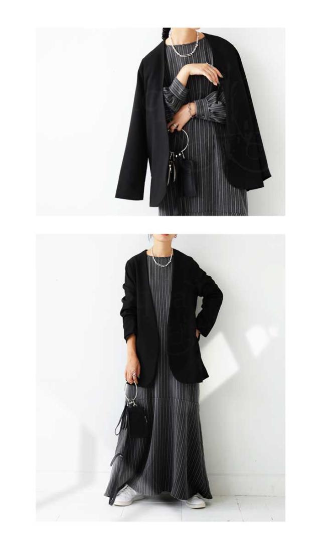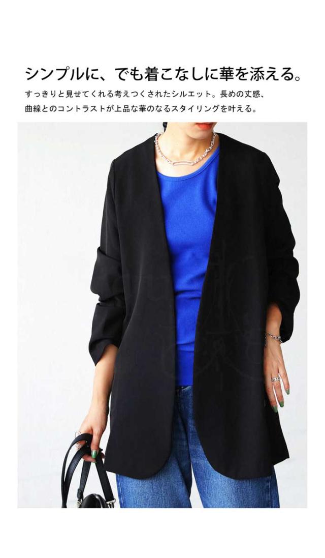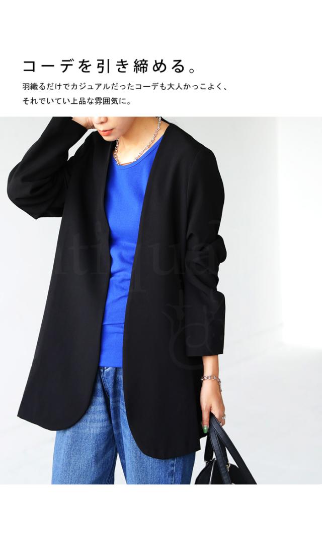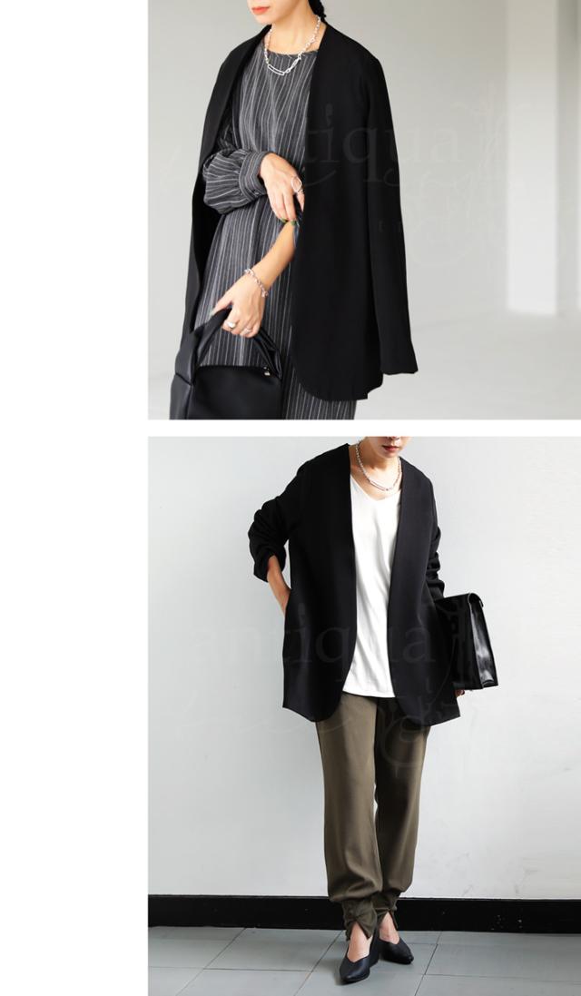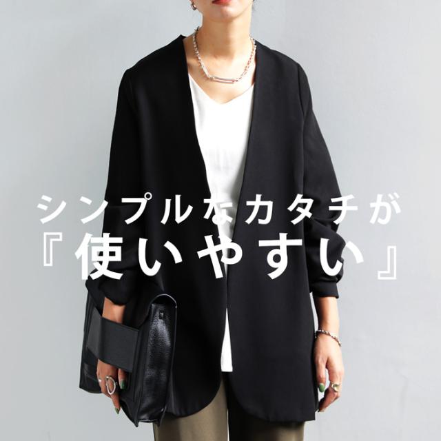 PY-00475 長袖 ノーカラー 無地 羽織り セットアップ 前開き ゆったり 高級感 きれいめ 上品 シンプル 通勤 オフィス 結婚式 二次会 パーティー オケージョン 入園式 卒園式
