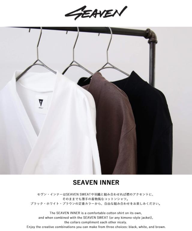 セヴン・インナーはSEAVEN SWEATや羽織と組み合わせれば襟のアクセントに、