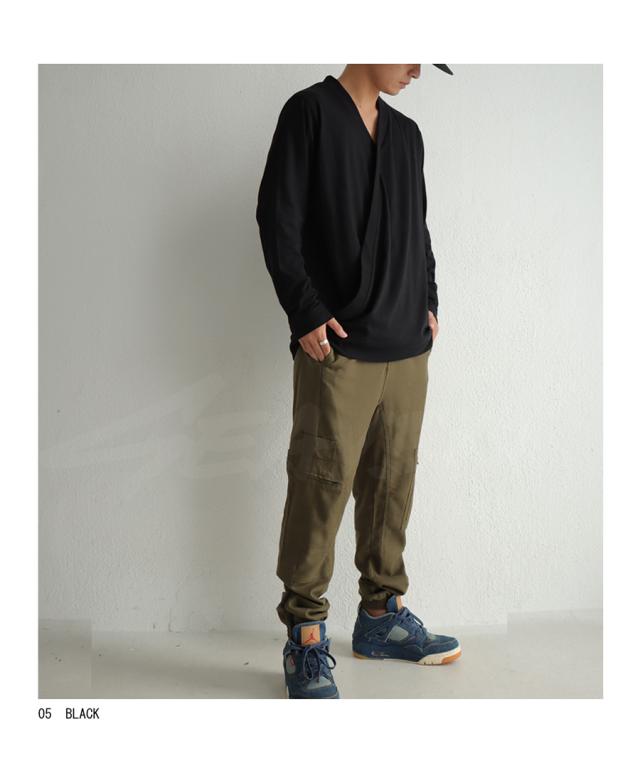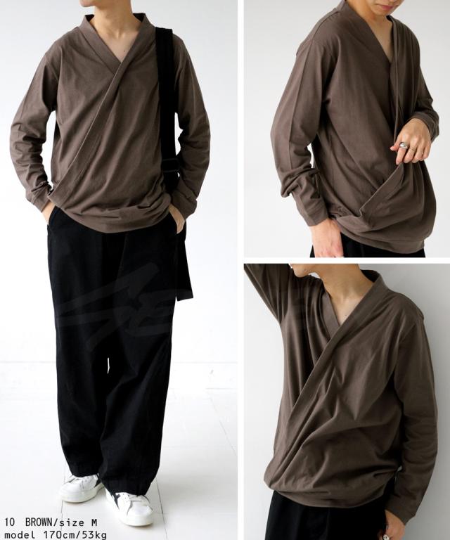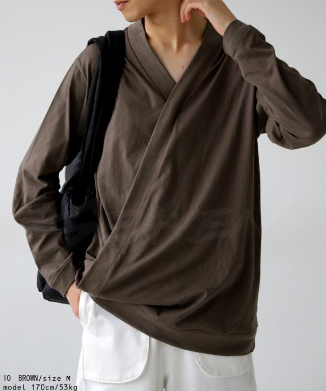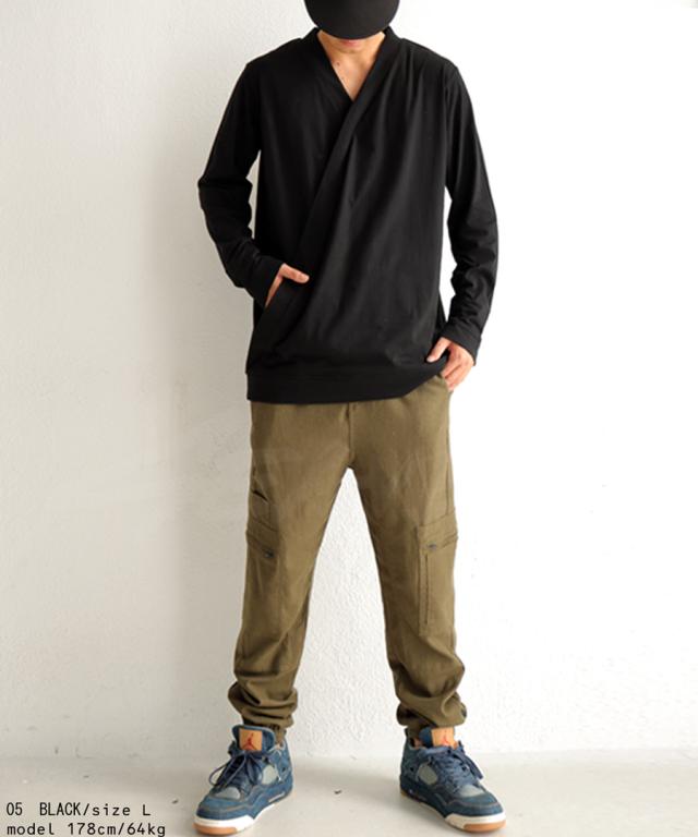 svo-1001 seaven shing02 メンズ トップス 綿100 ロンT 和 着物風 クロスデザイン Vネック シンプル 無地 インナー 重ね着 クロス コットンシャツ モード コットン 綿 リブ ユニセックス
