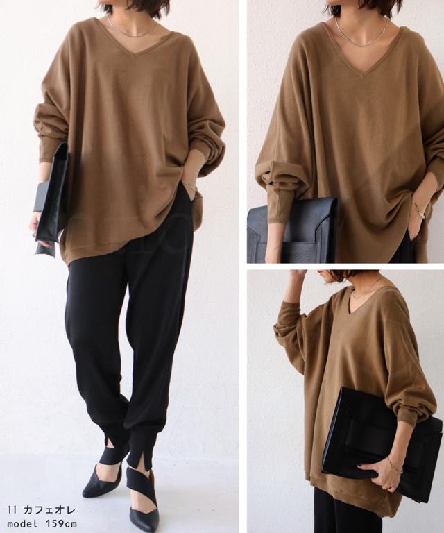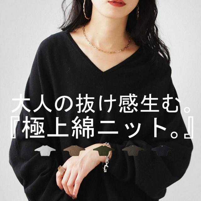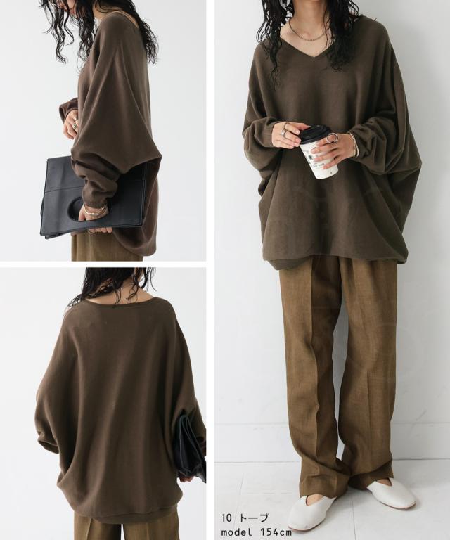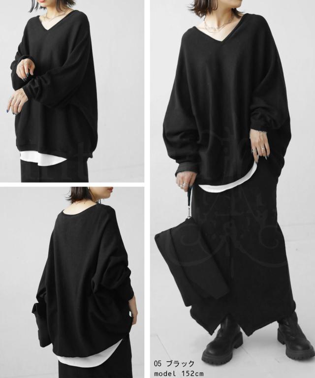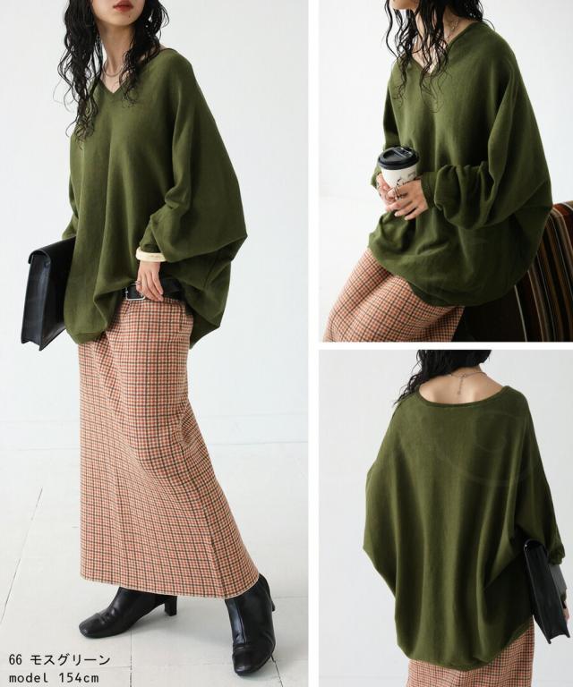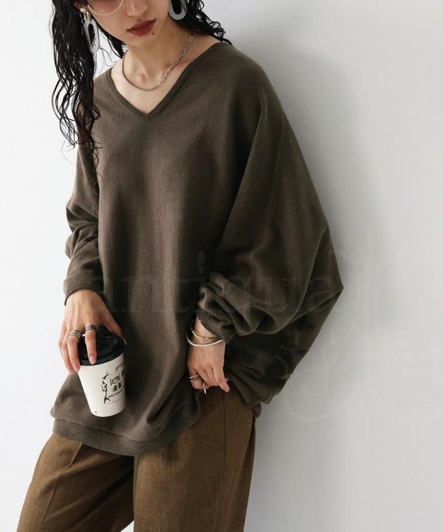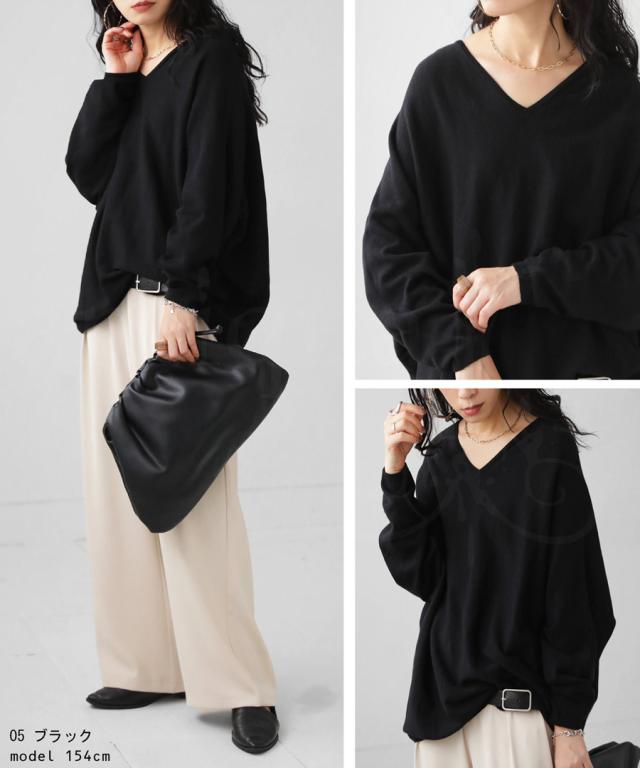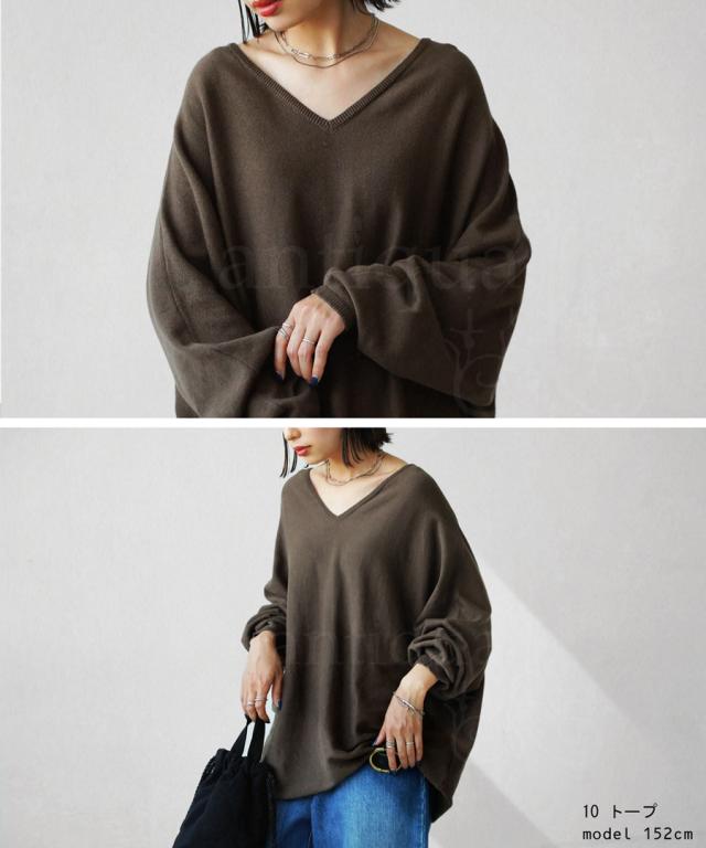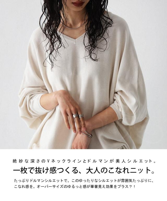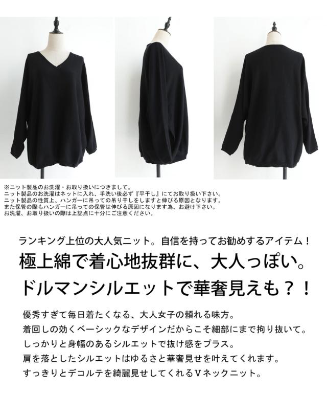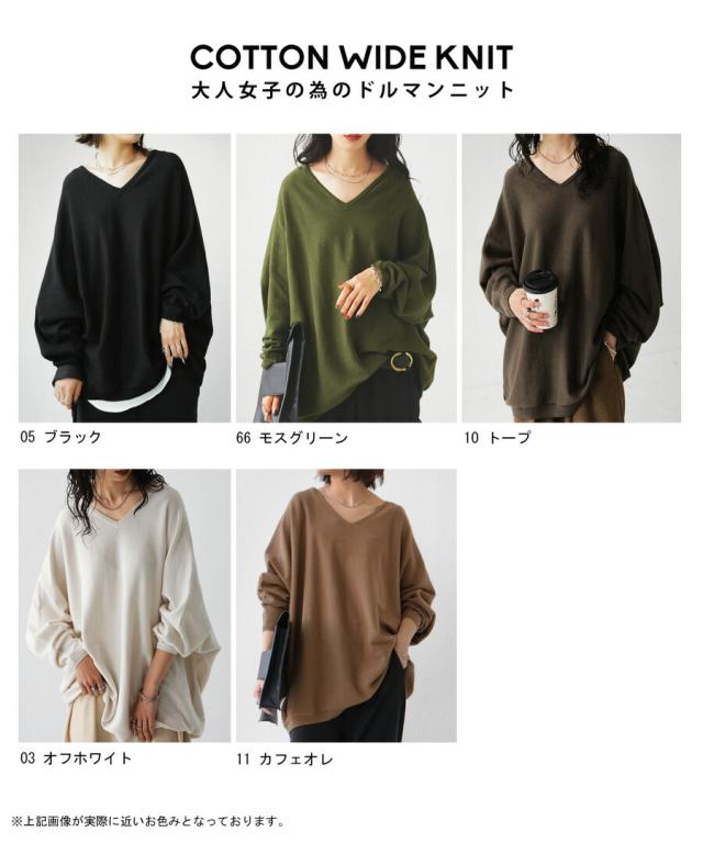 NA-00196 トップス Vネック 綿 綿100% 綿ニット ワイド ゆったり ドルマン オーバーサイズ 大きいサイズ ビッグシルエット