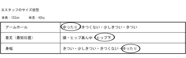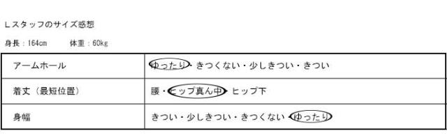 | ※平置き採寸です。サイズは目安にご参考下さいませ。 ※素材の特性上、平置き採寸のサイズと実際の着用サイズとは異なります。サイズ表から±3cm差がある場合がございますので着用イメージは画像をご確認いただき、ご了承の上、お買い求めくださいませ。 |
