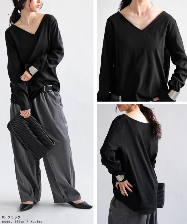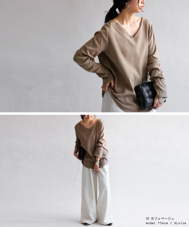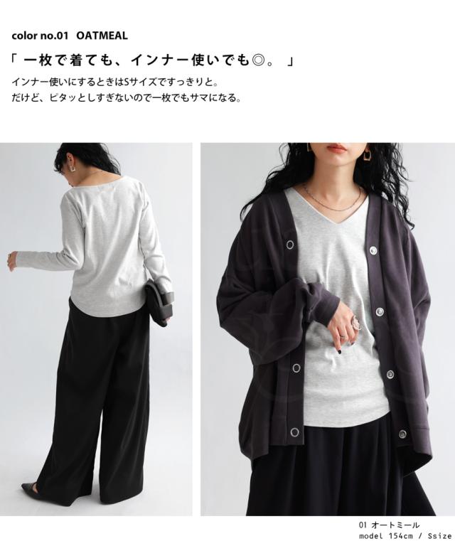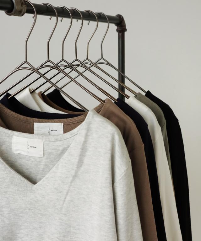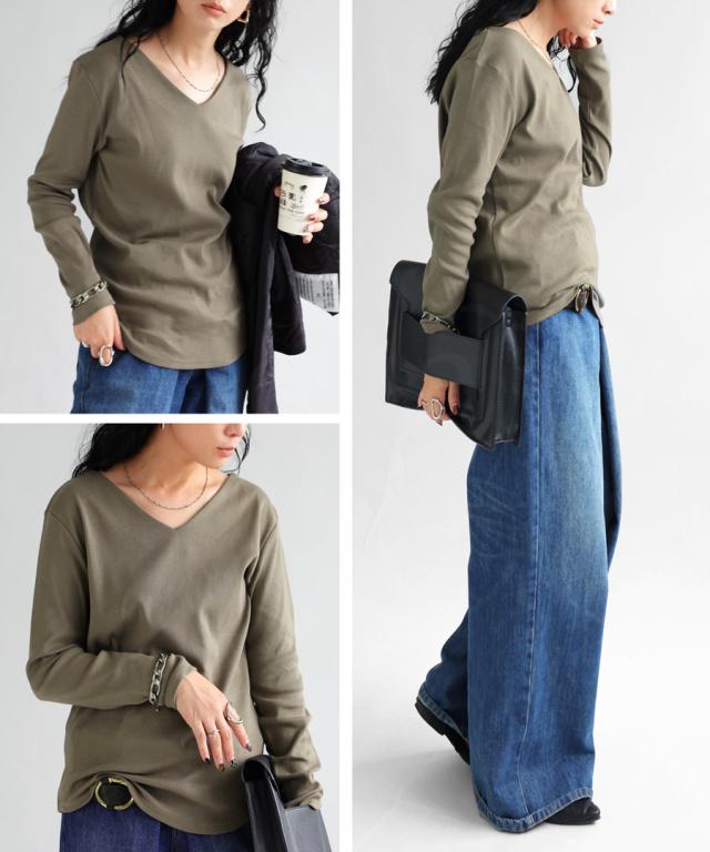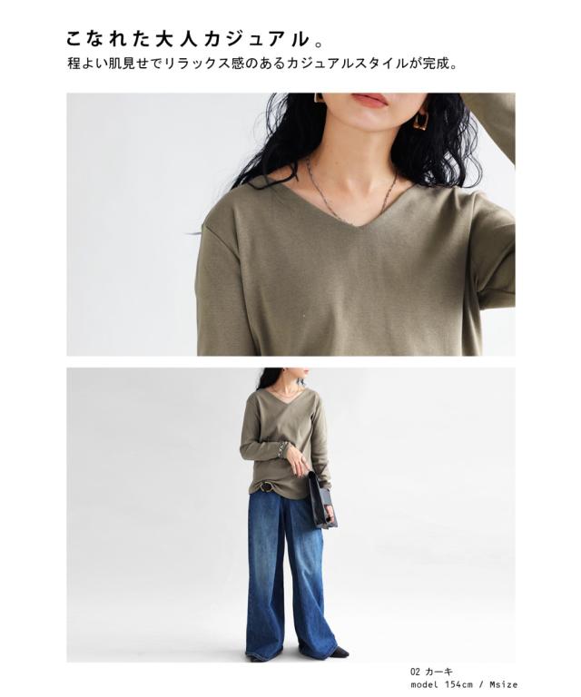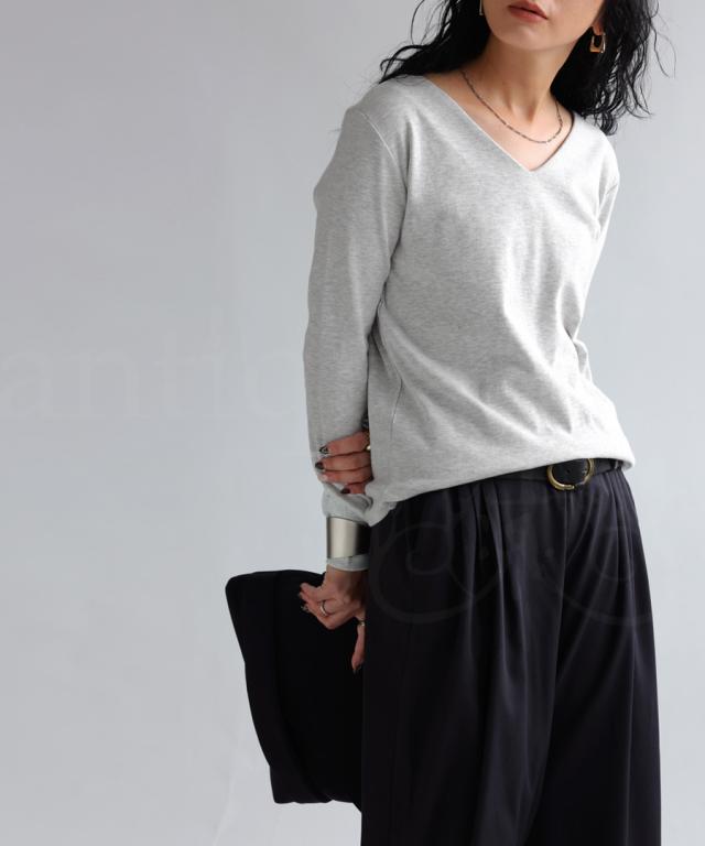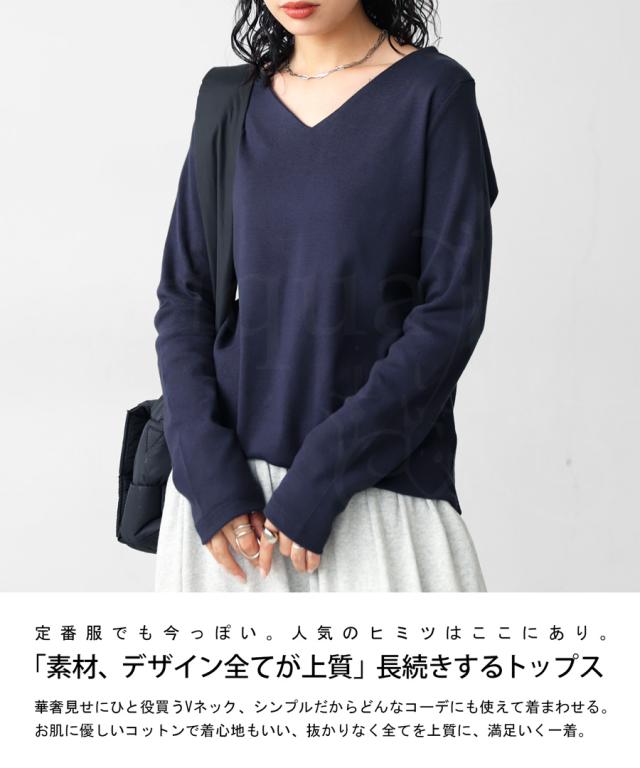 【検索ワード】コットンVネックロンT ロンT レディース トップス 長袖 綿100 シンプル 無地 Vネック Tシャツ カットソー 上品 きれいめ 見返し襟 人気 フライス綿 綿 コットン 定番 着回し カラバリ豊富 伸縮性 ストレッチ サイズ展開 S M L 母の日 レイヤード インナー レイヤードインナー antiqua アンティカ 大人 おしゃれ 10代 20代 30代 40代 50代 60代 春 秋 冬 お洒落 カジュアル かわいい かっこいい あんてぃか