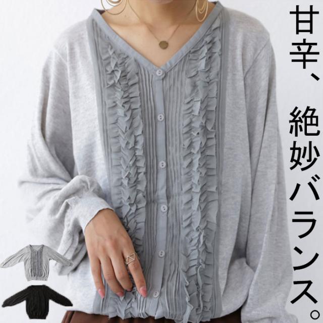 フリルニットカーディガン カーディガン レディース 送料無料・再入荷 メール便不可