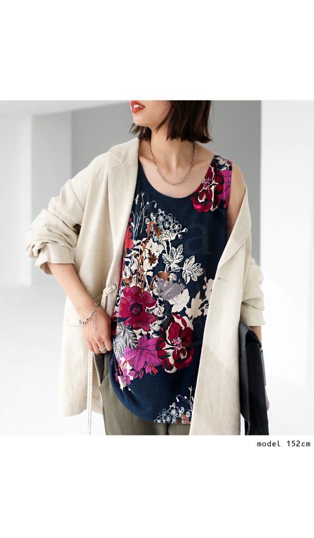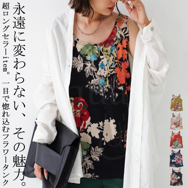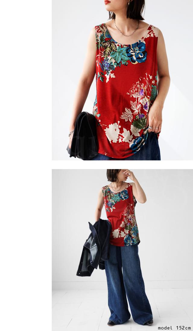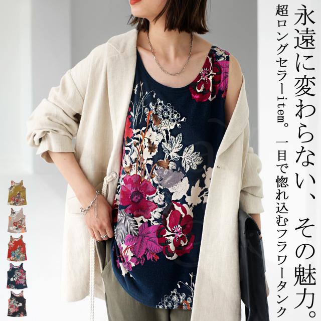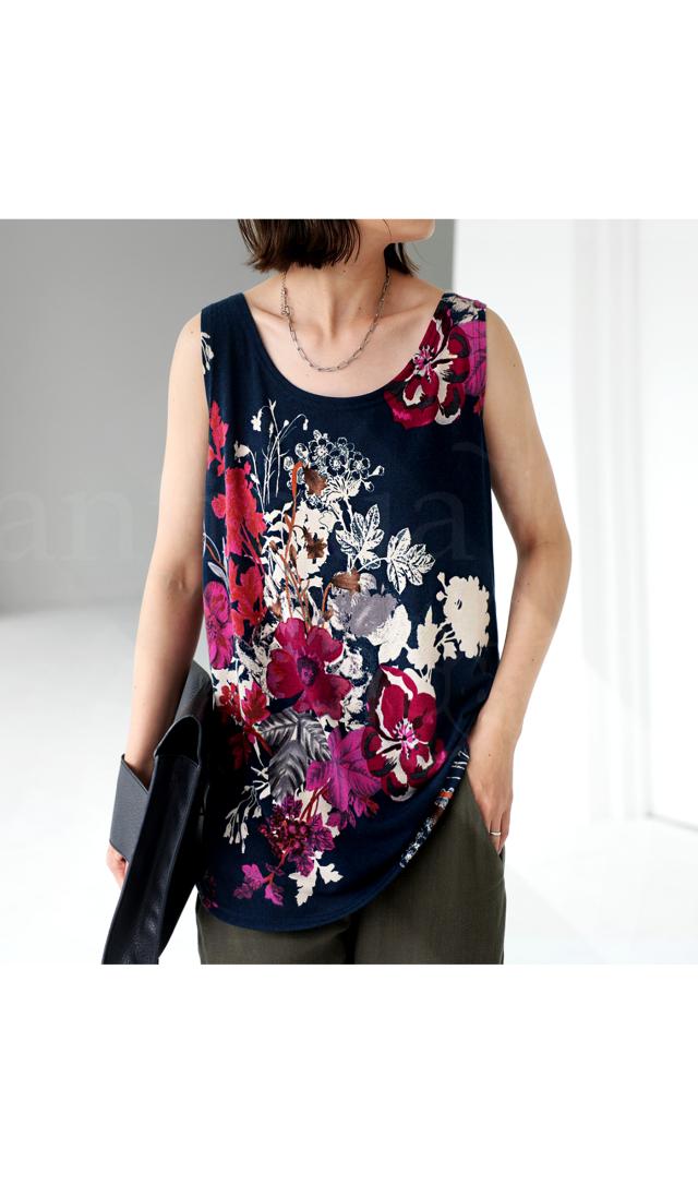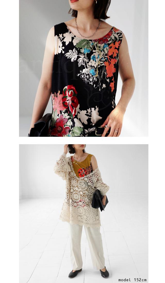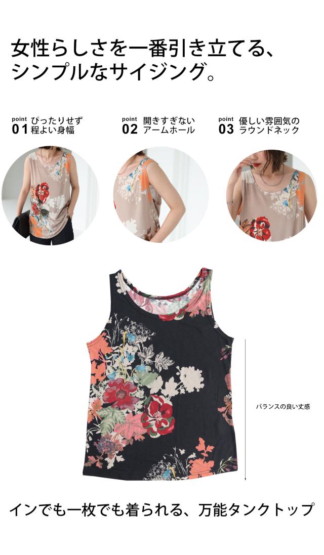 一目見た瞬間に心奪われるような魅力的な花柄を贅沢に使用したこのタンク。