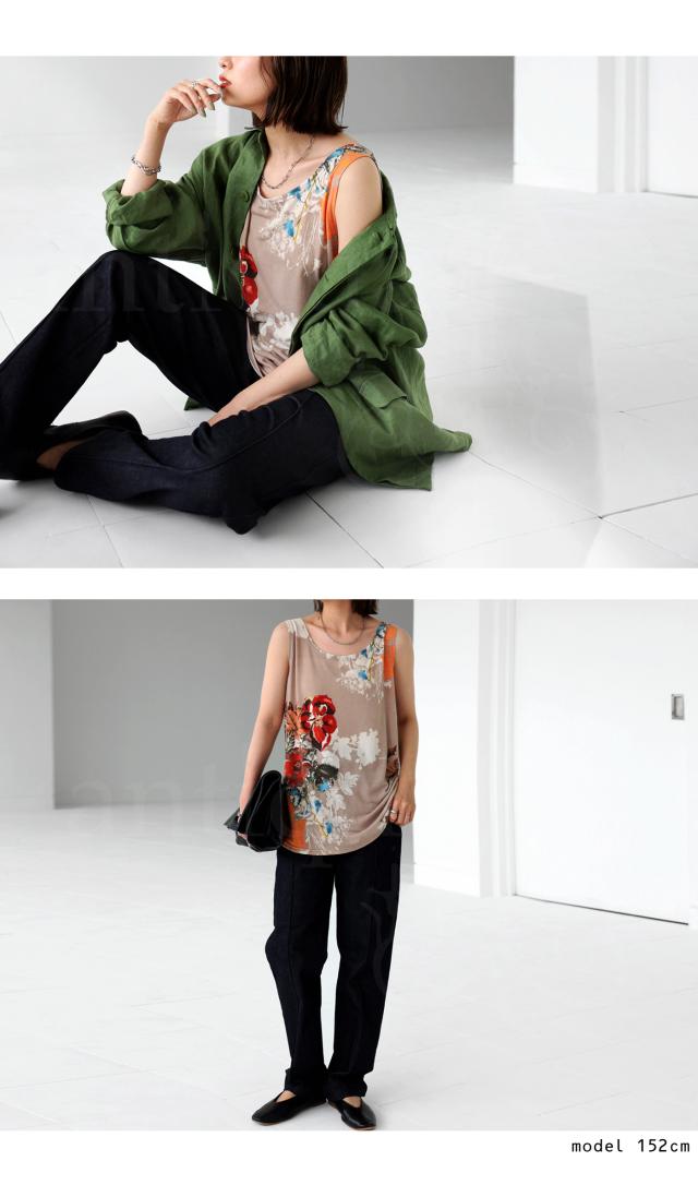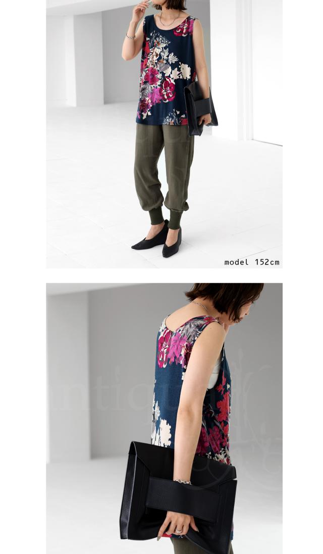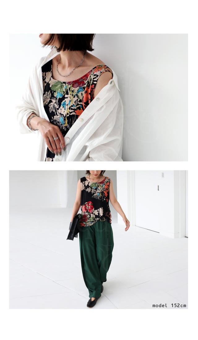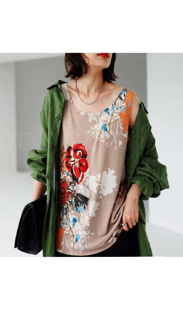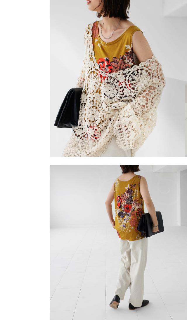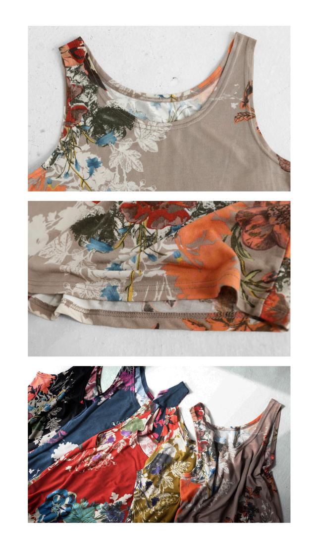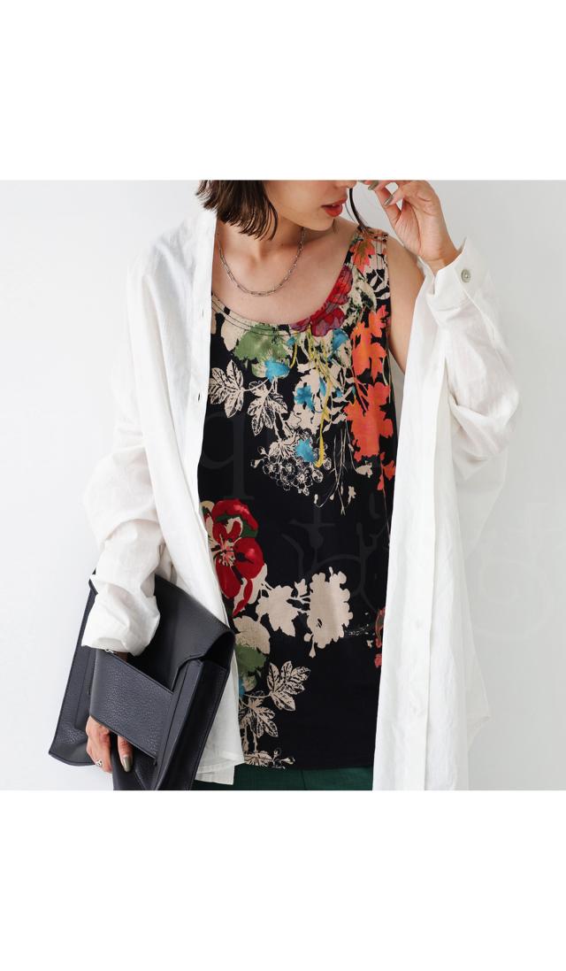 一目見た瞬間に心奪われるような魅力的な花柄を贅沢に使用したこのタンク。