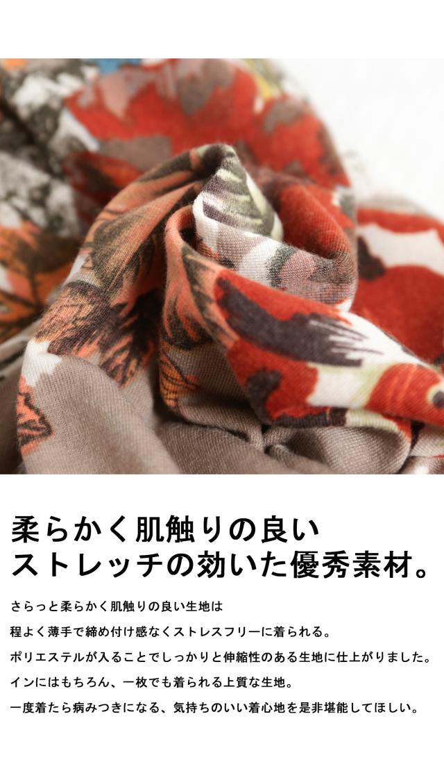 KE-02146 タンク ノースリーブ 柄 レトロ ラウンドネック Uネック カットソー 伸縮 ストレッチ インナー 重ね着 レイヤード 長め丈 オリジナル