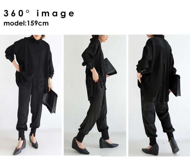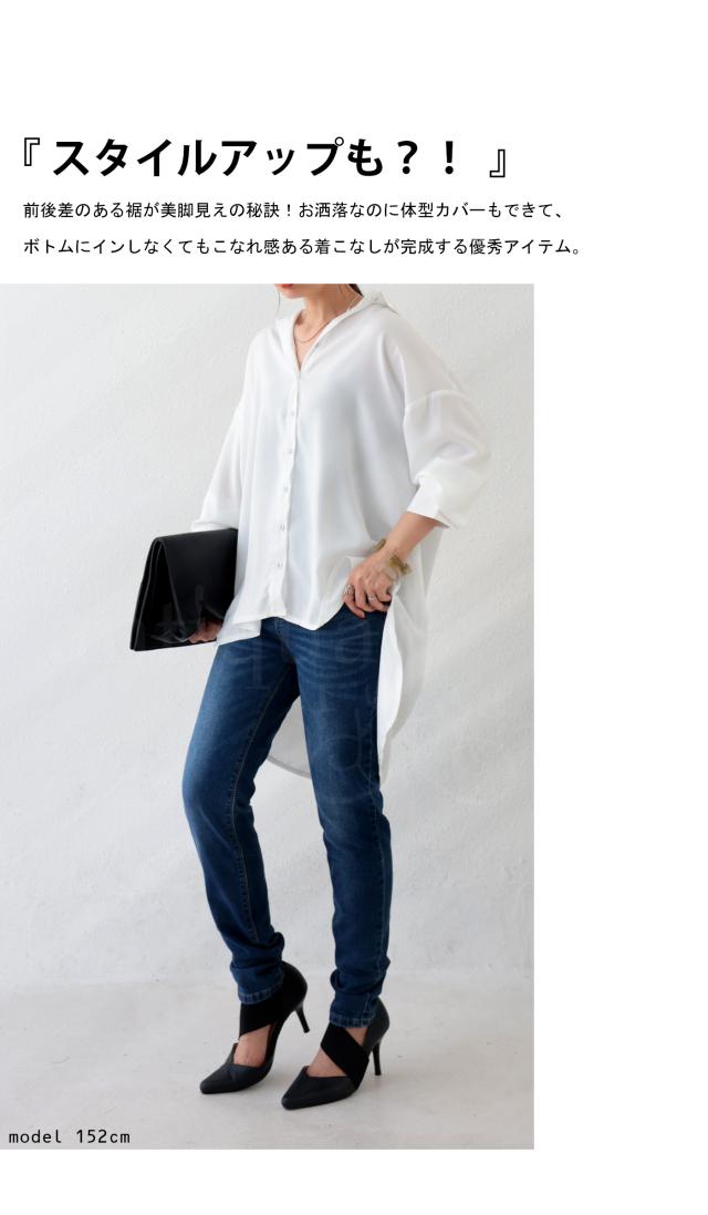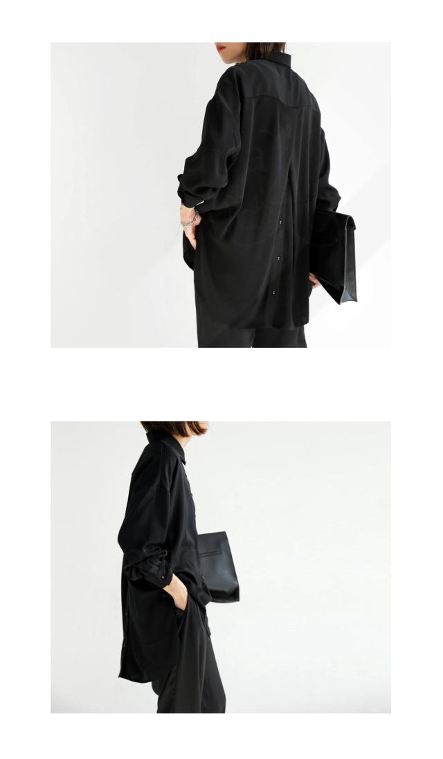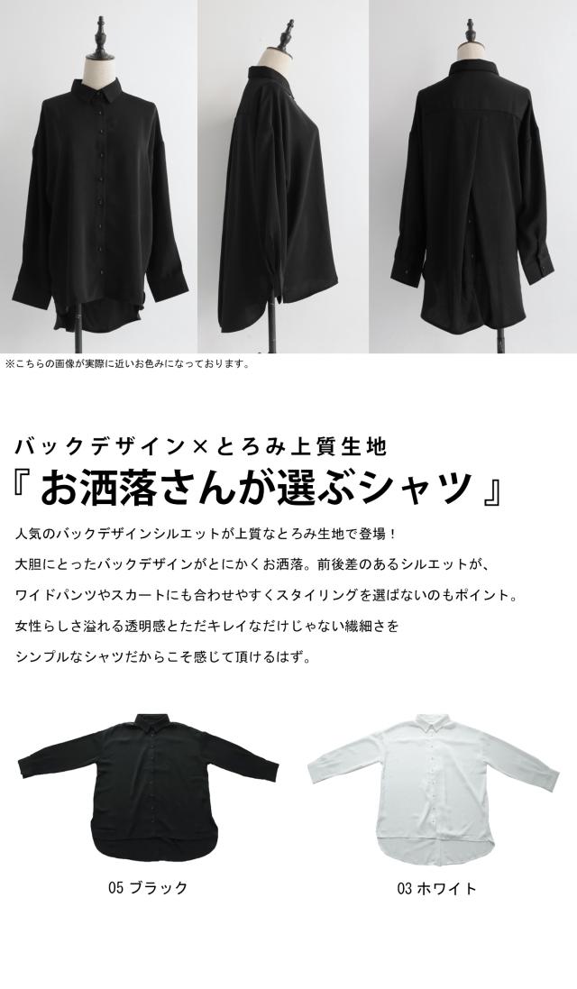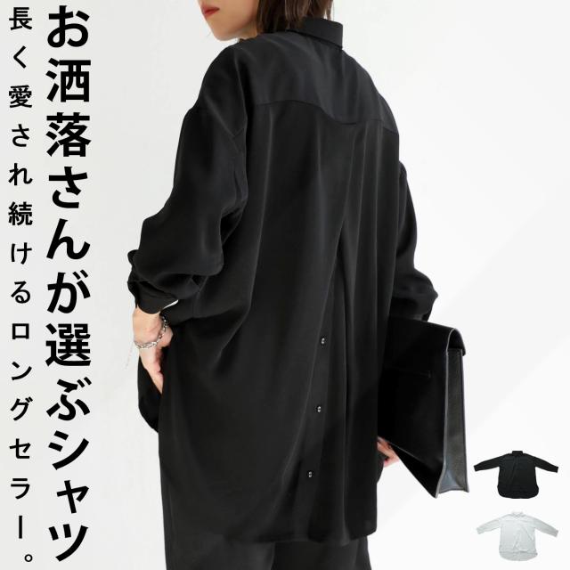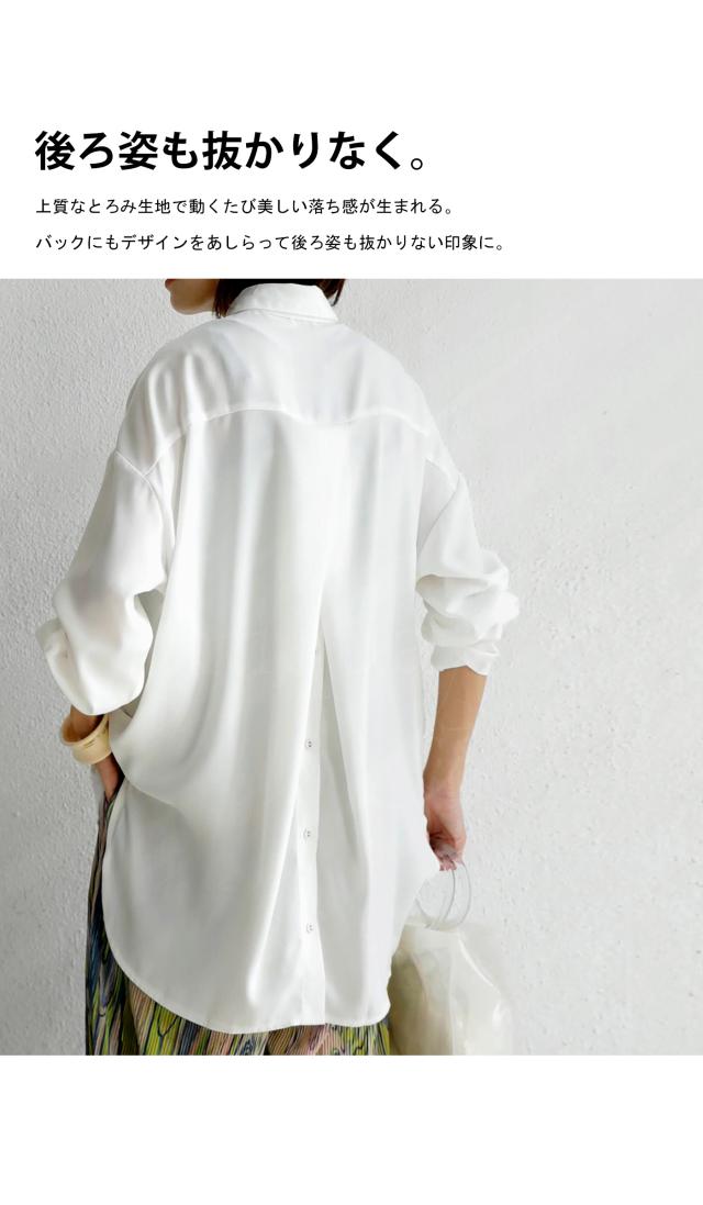 py-00369 ゆったり ロング 上品 とろみ ブラウス ロングシャツ 長め丈 バックデザイン 後ろボタン モード オーバーサイズ 大きいサイズ フォーマル 結婚式 二次会 パーティー オケージョン
