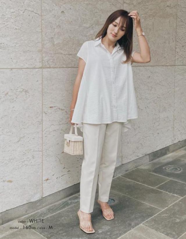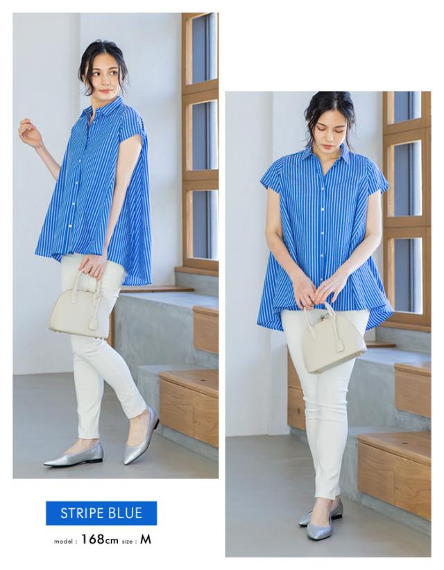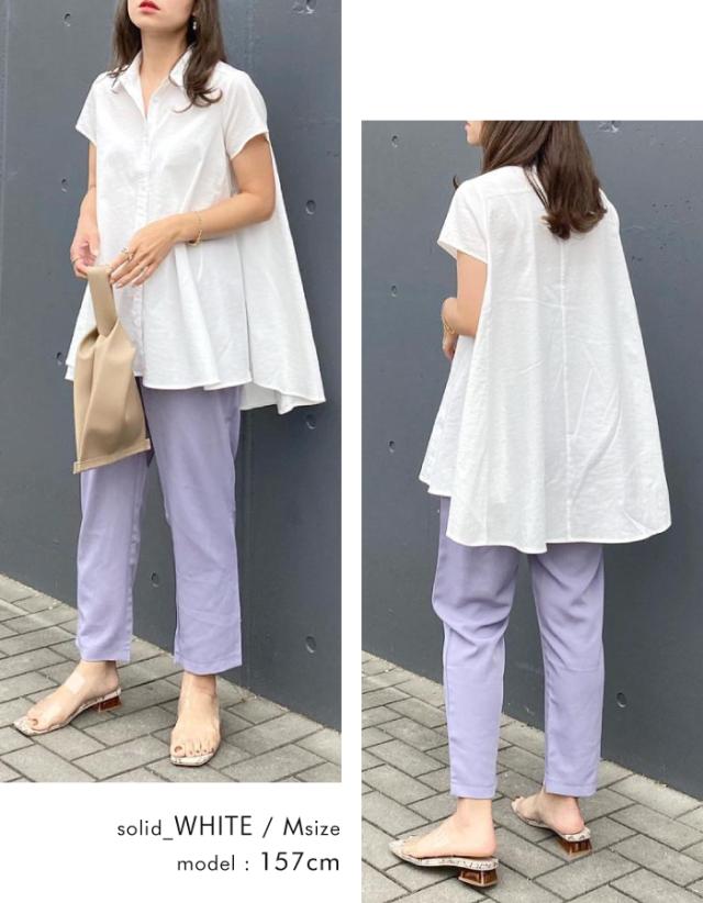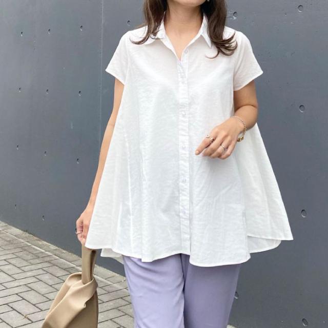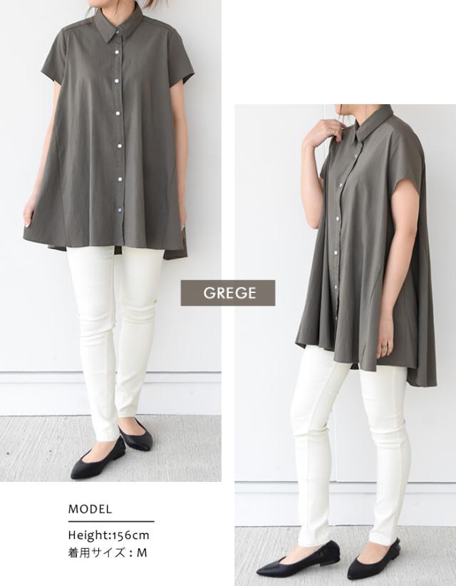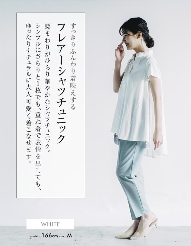 ≪ゆうメール便配送20・代引不可≫フレアーシャツチュニック レディース 春 夏 半袖 M L | アクアガレージ aquagarage
