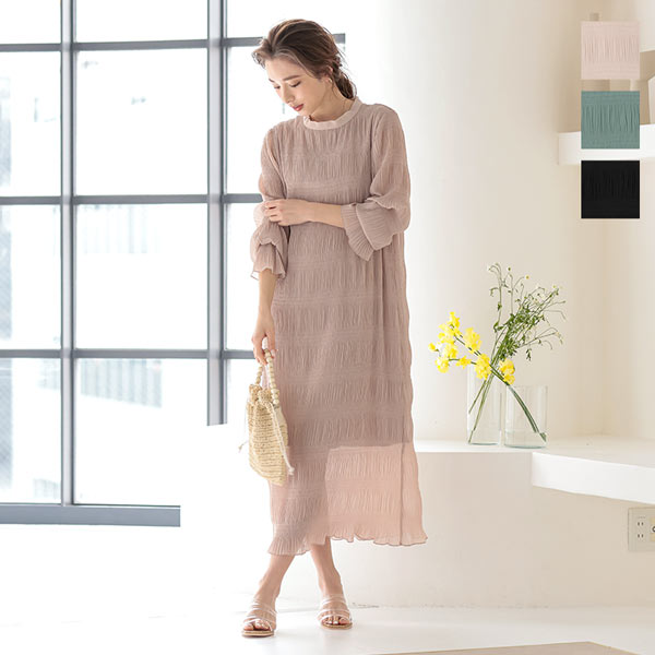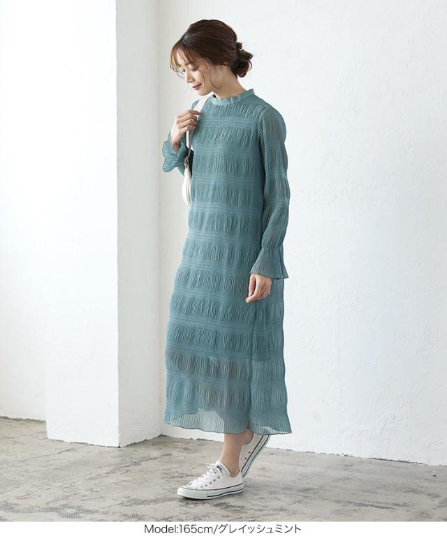 春新作 マジョリカプリーツワンピース E2743 入荷済 OR プレゼント レディース ロングワンピース 大人っぽい 上品 ロング丈