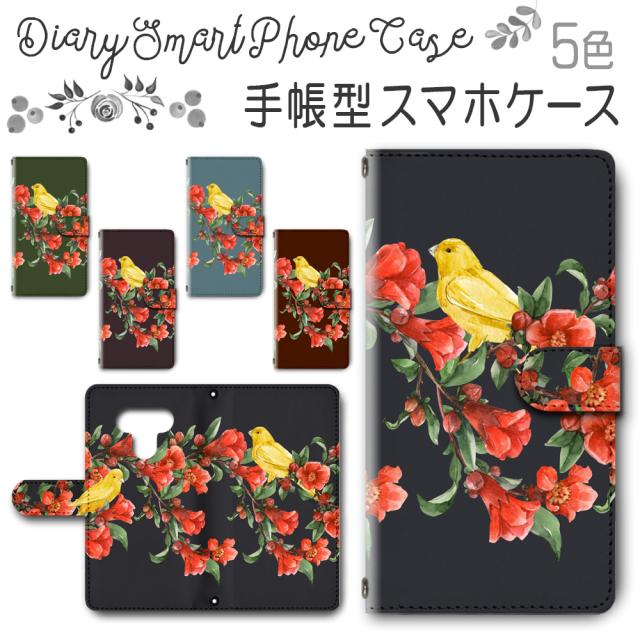 スマホケース スマホ ケース スマホカバー スマホ カバー 手帳型 LG style3 L-41A 対応 送料無料 小鳥 花 フラワー ツバキ 椿 動物 自然 / dc-393
