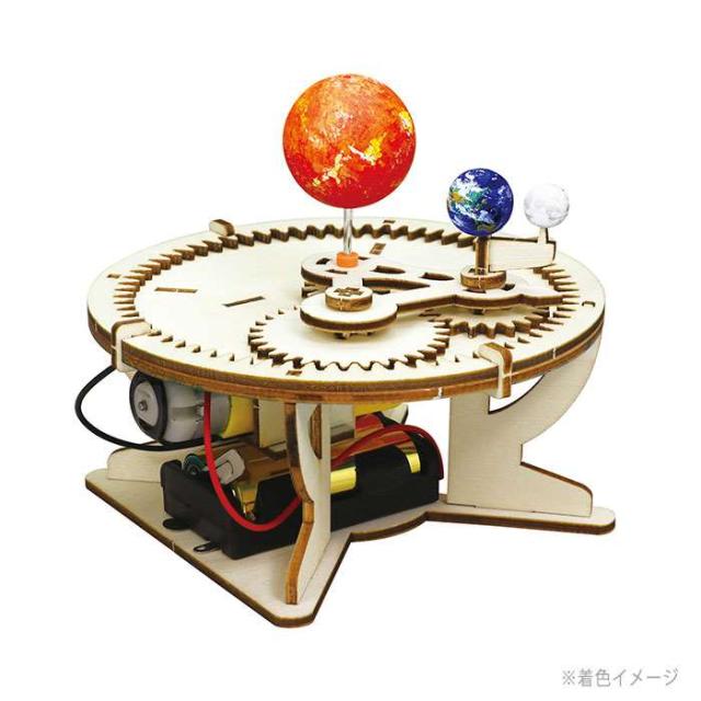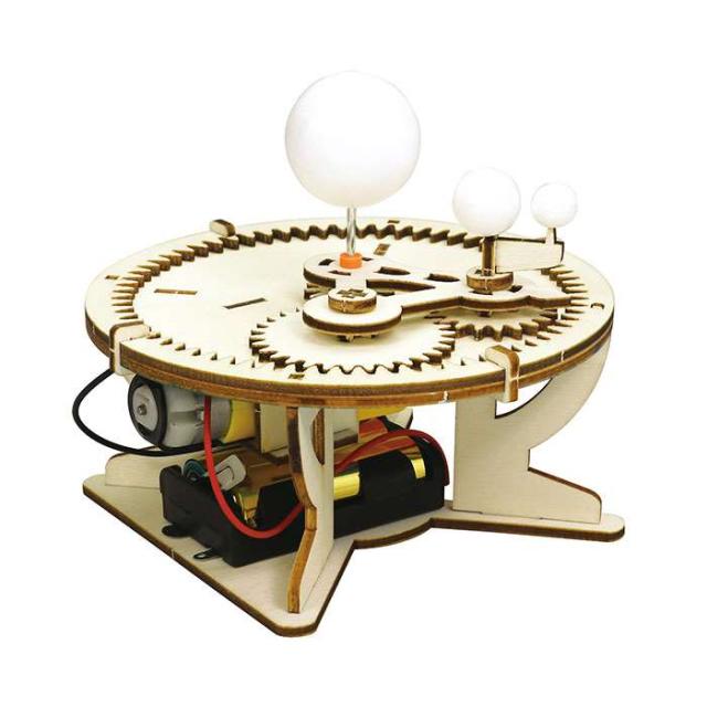 三球儀組立キット。電動で回転する三球儀をつくろう!太陽・地球・月の自転や公転を再現。単3アルカリ電池2本使用(別売)。
