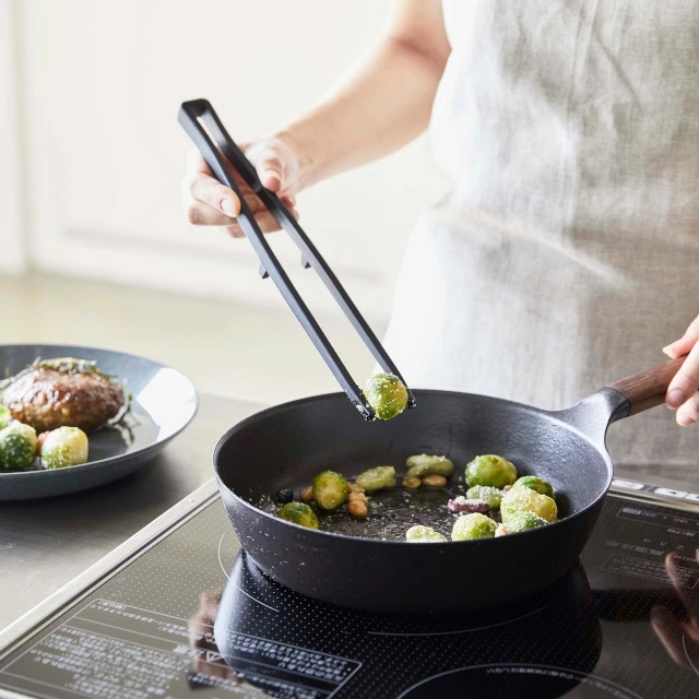 グリップは太めで長時間の調理でも疲れにくい軽くて丈夫なナイロン芯材。