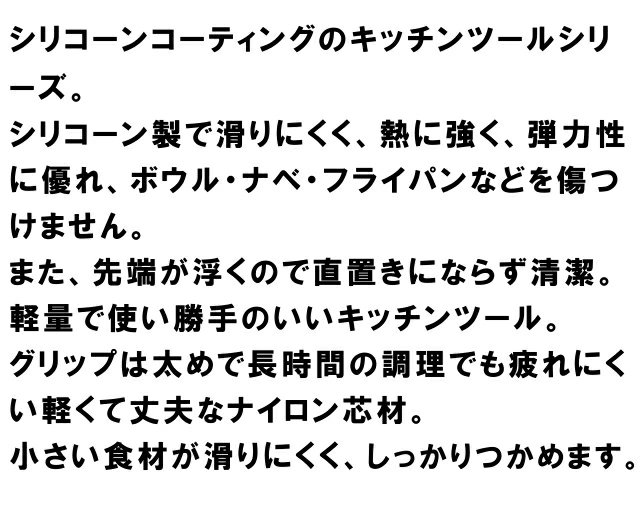 シリコーンコーティングのキッチンツールシリーズ。 |