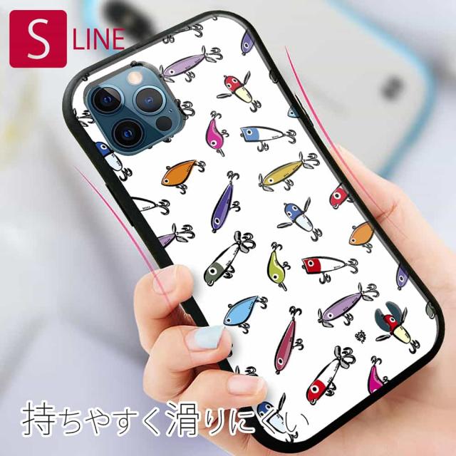 S-LINE ケース iPhone13 mini iPhone13 Pro Max iPhone12 Pro iPhone11 Pro iPhoneXs iPhoneXR Xperia 5 III Xperia 10 III Pixel 5a AQUOS sense6 釣り 魚 ルアー 釣りざんまい ルアーコレクション_カラフルホワイト