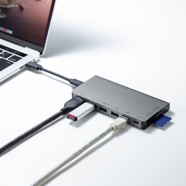 ■対応機種:Windows搭載(DOS/V)パソコン。Apple Macシリーズ。Chrome OS搭載パソコン。※USB Type-Cポートを持ち、パソコン本体メーカーがUSBポートの動作を保証している機種。※USB3.2 Gen1(USB3.1/3.0)の環境で動作させるためにはパソコン本体にUSB3.2 Gen1(USB3.1/3.0)ポートが搭載されており、接続するケーブルや機器についてもUSB3.2 Gen1(USB3.1/3.0)に対応している必要があります。※USB2.0/1.1規格の製品を接続する場合、最大転送速度は遅いほうの規格になります。※本製品はUSB3.2 Gen1(USB3.1/3.0)規格に対応しておりますが、USB3.2 Gen1(USB3.1/3.0)の理論値(5Gbps)の転送速度を保証するものではありません。※本製品はUSBハブですが、全てのUSB機器に接続できるものではありません。また動作を保証するものではありません。※USBスキャナーやスキャナーを搭載した複合機、USB機器の認識にシビアなUSB機器についてUSBハブ経由では正常に動作しない場合があります。※Windowsパソコンでの場合、各映像出力に対応したType-Cポートのみの対応です。※充電専用Type-Cポートを使用する場合、必ず純正のACアダプタを接続してください。※Nintendo Switchには対応していません。※iPad Proで有線ネットワークを接続する場合はWi-FiをOFFにする必要があります。※USB Type-C接続のモニターには対応していません。