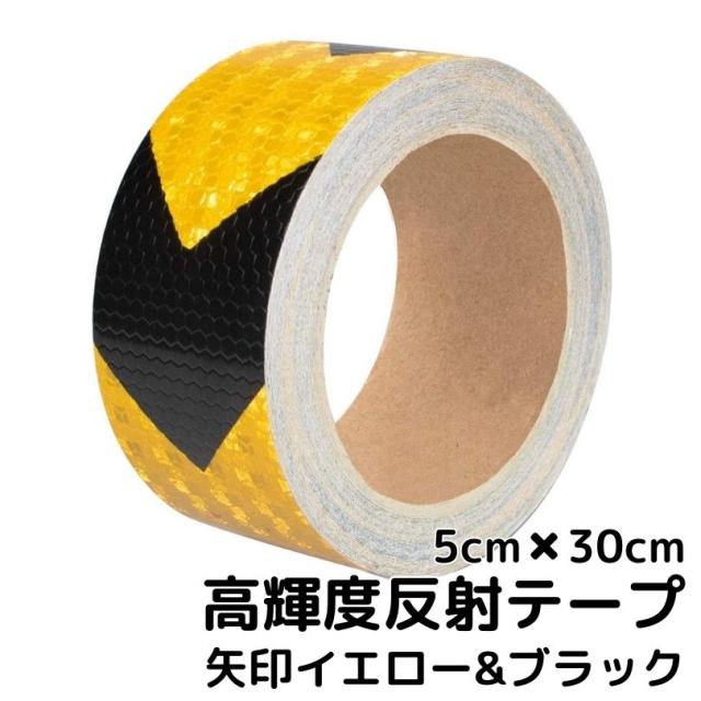超高輝度反射テープ 5cm幅×30cm イエロー&ブラック【矢印】トラテープ 黄黒 高反射シール トラック自動車バイクなどに 夜間安全対策ステッカー リフレクター