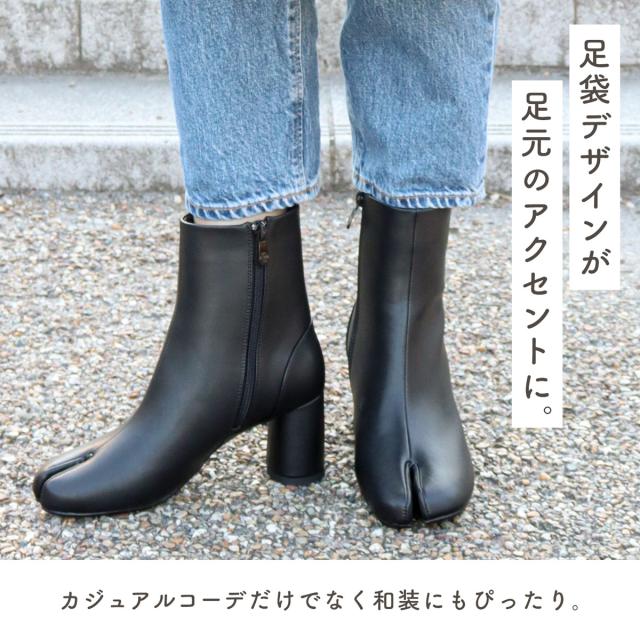 ブーツ レディース 足袋ブーツ サイドジップ 太ヒール 7cmヒール 22.5-25.5cm 黒 ブラック No.9043 リバティードール ショートブーツ 美脚 履きやすい 合成皮革 PUレザー 2E 足袋シューズ 黒 ブラック 茶 ブラウン 和装 着物 袴