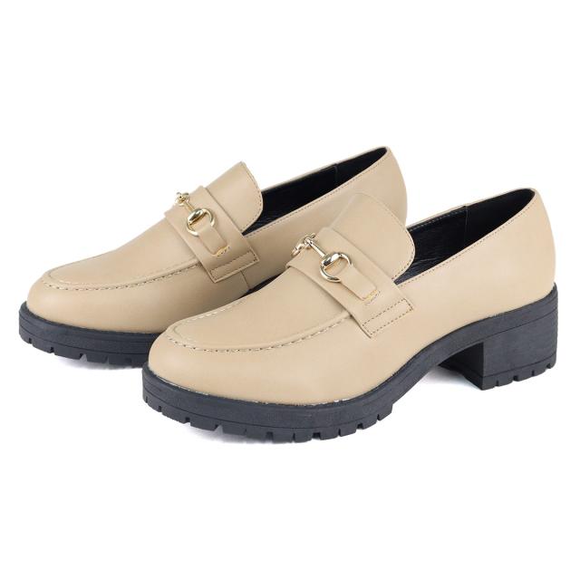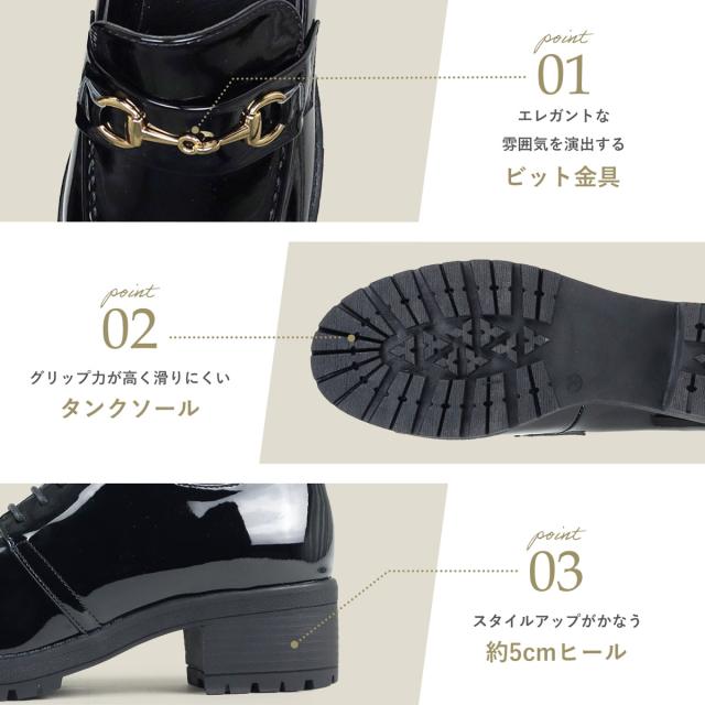 【返品交換不可】ローファー レディース 厚底 5cmヒール ビット 飾り 革靴 合成皮革 黒 ブラック 22.5-26.0cm No.3584 サンエープラスフェミニン