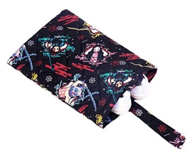 鬼滅の刃/キルトシューズバッグ 靴入れ 上履き入れ/ブラック(キャラクター グッズ)