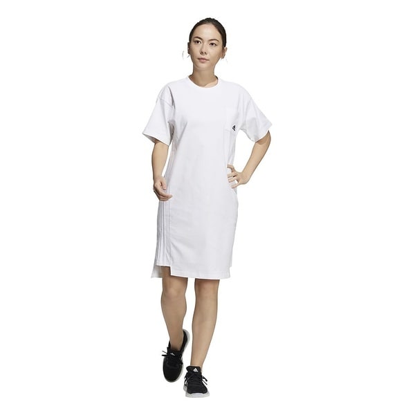 胸ポケットに刺繍のロゴを配したTシャツワンピース。