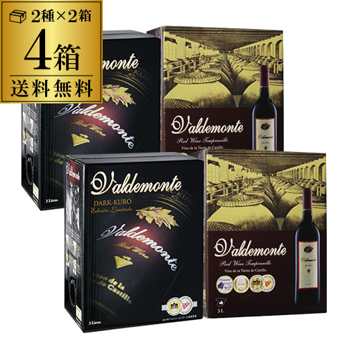 送料無料 箱ワイン バルデモンテ3L レッド & ダーク 飲み比べ4箱セット 長S