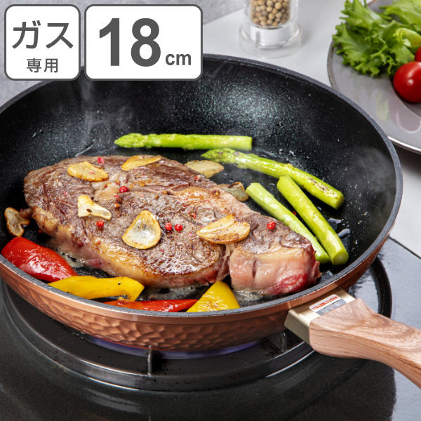 浅型フライパン 18cm ガス火 槌目加工 厚底 鍛造フライパン フッ素樹脂加工 底面2.5mm ( 18センチ 浅型 フライパン 調理器具 鍛造 フライパン 18cm)