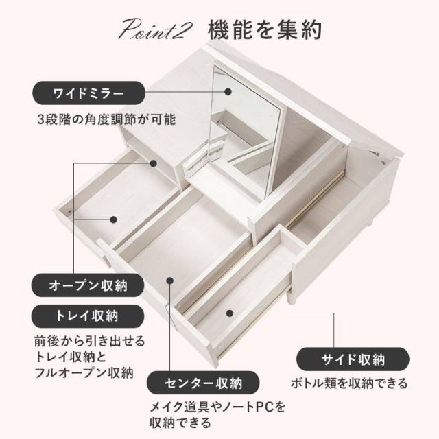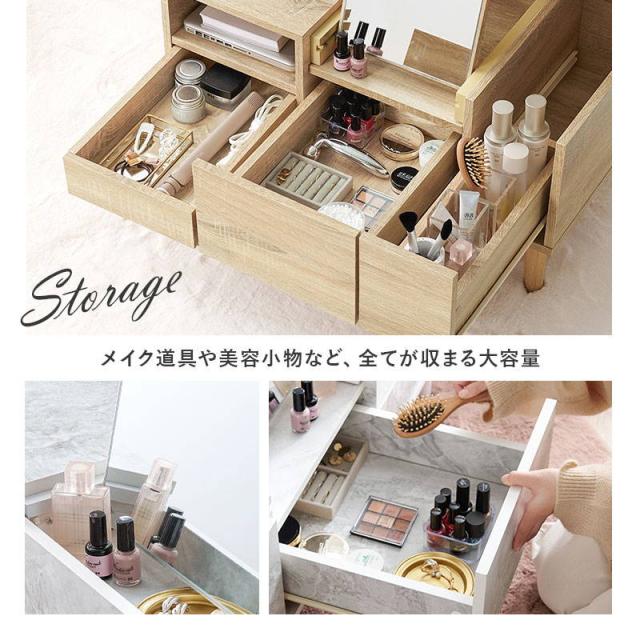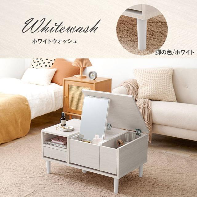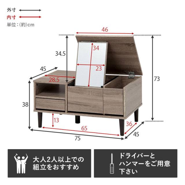 テーブルドレッサー コスメテーブル 化粧台 鏡台 幅75cm 大容量収納付き おしゃれ センターテーブル リビングテーブル