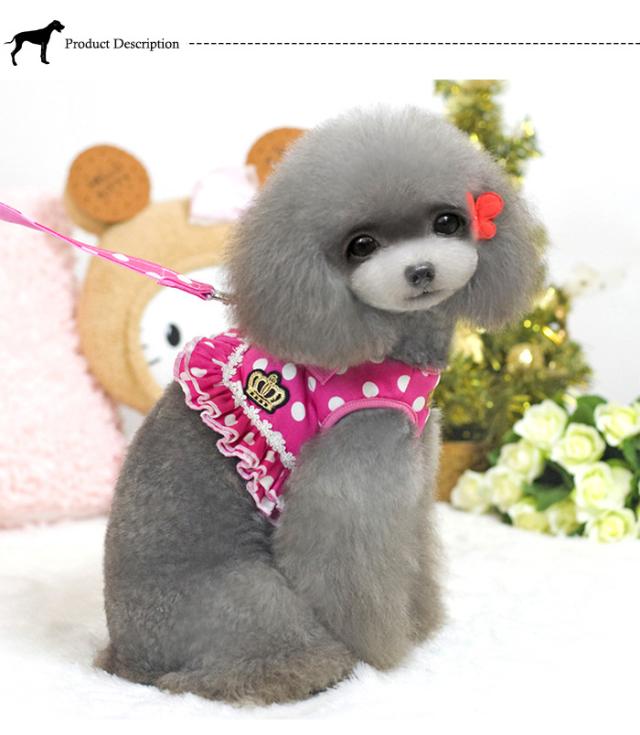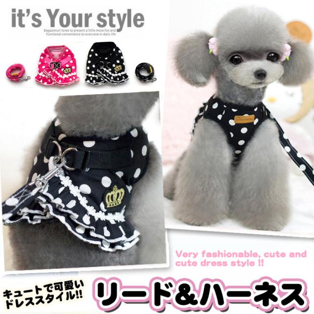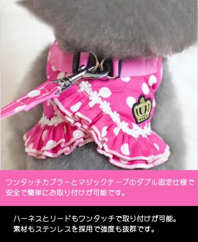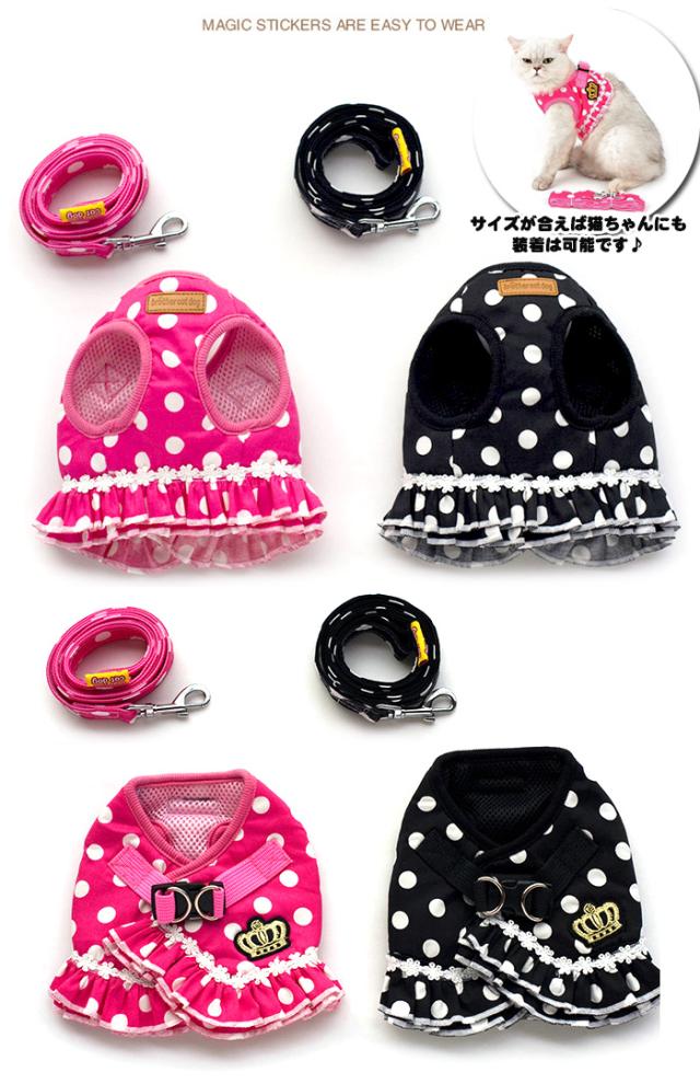犬 ハーネス リード 付 ドレス 水玉 ウェアハーネス ペット 服 ワンピース 胴輪 キャット ドッグ h0344
