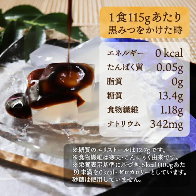 - わらび餅風寒天が、臭みも全くなく 黒蜜をかけて食べたら 本当に美味しいかったです 0カロリーなので、 ダイエットにも、OK リピしました