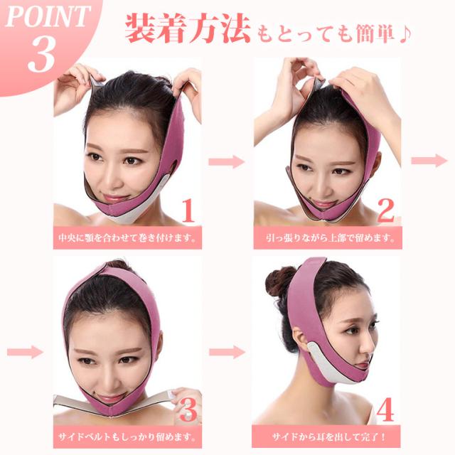 本体とサブベルトの二重ベルトで顔全体のたるみや、頬や顎などの引き上げをサポート!