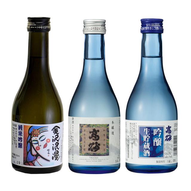 送料無料 高砂 飲み比べ Aセット (300ml 3本) / 本醸造 純米吟醸 生貯蔵酒 日本酒 お取り寄せ ギフト プレゼント おすすめ