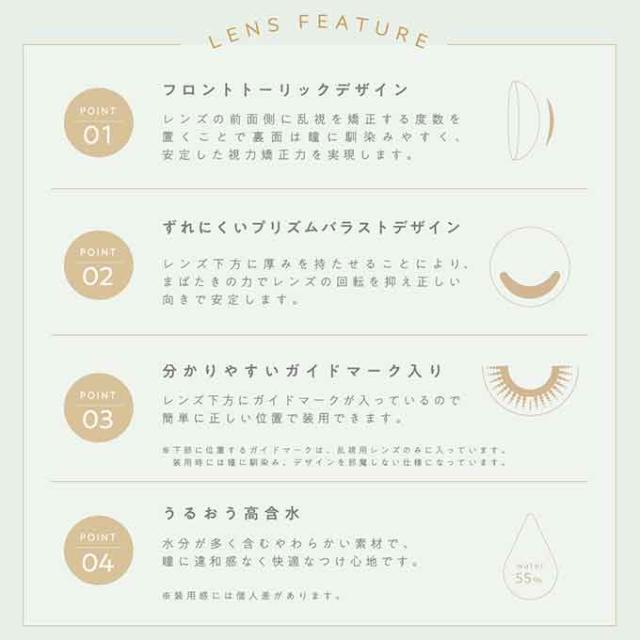 【TOPARDS-TORIC-基本スペック】 □カラー:デートトパーズ,ストロベリークォーツ,オパール,ベイビーエスプレッソ