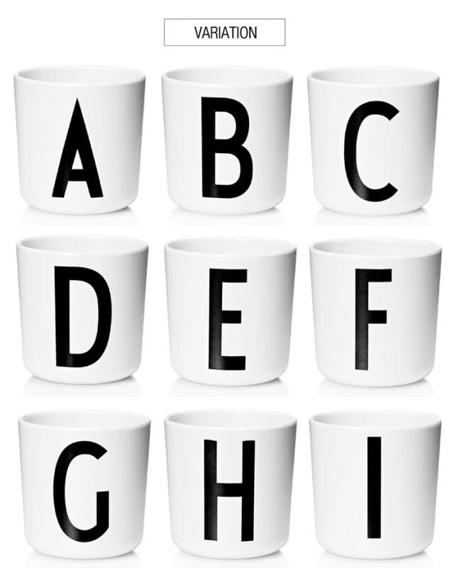 正規品/DESIGN LETTERS(デザインレターズ) MELAMINE CUPS [A-M] メラミンカップ A B C D E F G H I J K L M 子ども 男の子 女の子 イニシャル コップ デンマーク モノトーン キッズ 食器 出産祝い