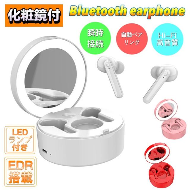 LED化粧ミラー付き Bluetooth 5.0 完全ワイヤレスイヤホン 両耳片耳 高音質 耳掛け式 EDR搭載 防水 ブルートゥース イヤホン マイク付き