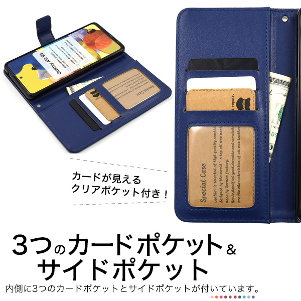 スマートフォンケース Galaxy A51 5G SC-54A SCG07用 手帳型 カラーレザー 携帯ケース 無地 スマホケース 装着簡単 シンプル ベーシック スマフォケース シンプル カジュアル ケース エレガント 上品 お洒落 オシャレ おしゃれ スマホカバー 大人っぽい auスマホ カバー