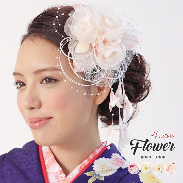 晴れの日の着物におすすめな花の髪飾りです。