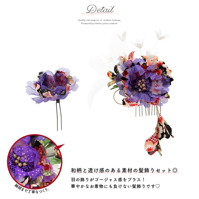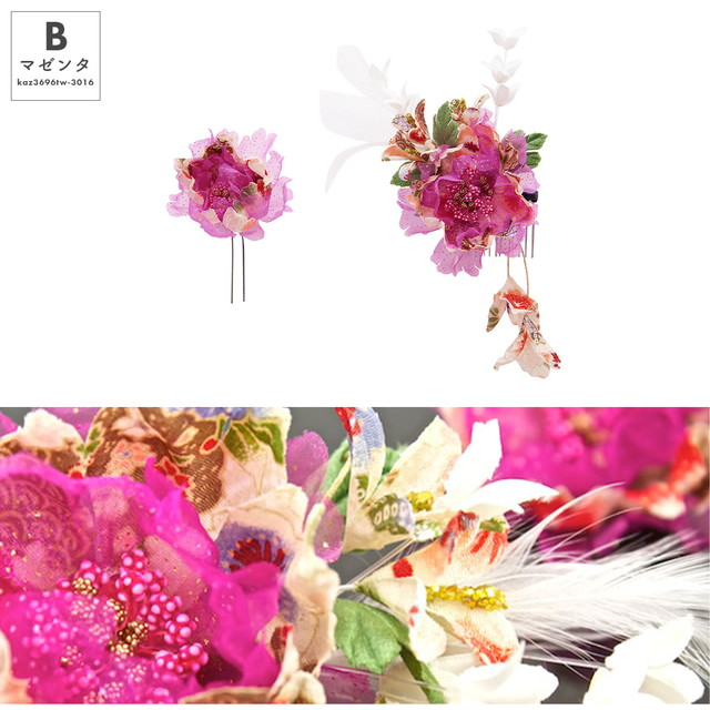 髪飾り 和装 和装髪飾り 成人式 卒業式 袴 振袖 花 2点セット 和柄 ぶら飾り 紫 マゼンタ コーム Uピン 送料無料
