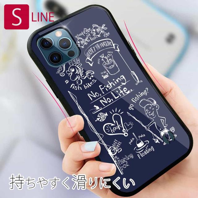 S-LINE ケース iPhone13 mini iPhone13 Pro Max iPhone12 Pro iPhone11 Pro iPhoneXs iPhoneXR Xperia 5 III Xperia 10 III Pixel 5a AQUOS sense6 釣り 魚 ルアー 釣りざんまい 釣りが好きなんです_ネイビー