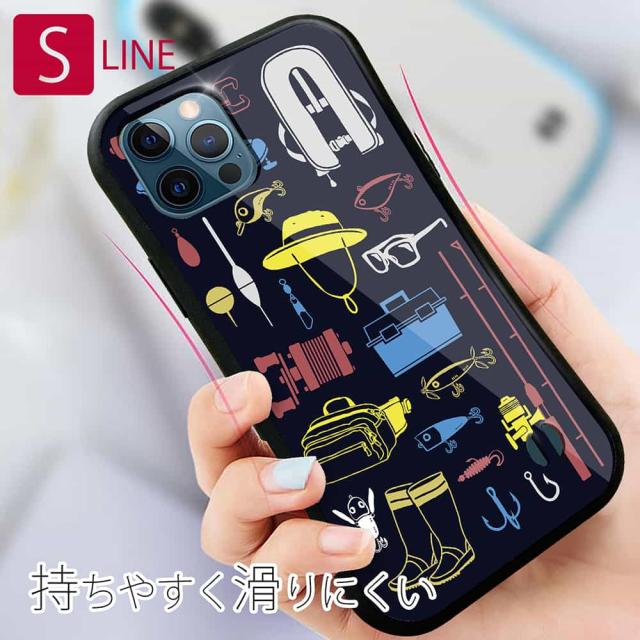 S-LINE ケース iPhone13 mini iPhone13 Pro Max iPhone12 Pro iPhone11 Pro iPhoneXs iPhoneXR Xperia 5 III Xperia 10 III Pixel 5a AQUOS sense6 釣り 魚 ルアー 釣りざんまい FISHING TOOL_ネイビー