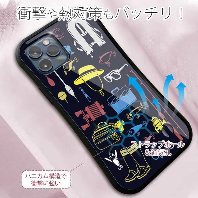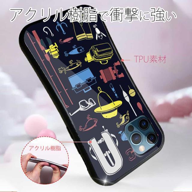 | 商品説明 | 落下や衝撃に強いTPUケース+綺麗に印刷できるアクリル板でプリント。釣りに必要なロッド・リール・ルアー・タックルボックス・フック・シンカー・ブーツ・ライフジャケット・偏光サングラス・ウキ・帽子などのフィッシングツール満載のデザイン。釣り好きアングラーにピッタリ。 |