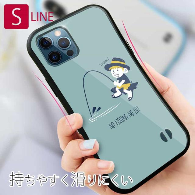 S-LINE ケース iPhone13 mini iPhone13 Pro Max iPhone12 Pro iPhone11 Pro iPhoneXs iPhoneXR Xperia 5 III Xperia 10 III Pixel 5a AQUOS sense6 釣り 魚 ルアー 釣りざんまい 釣りを楽しむ少年_ミント