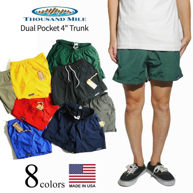 サウザンドマイル THOUSAND MILE デュアルポケット 4インチトランク | ナイロンショーツ ショートパンツ メンズ 水陸両用 S-XL 水着 サーフトランクス スイムトランクス アメリカ製