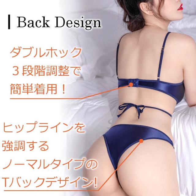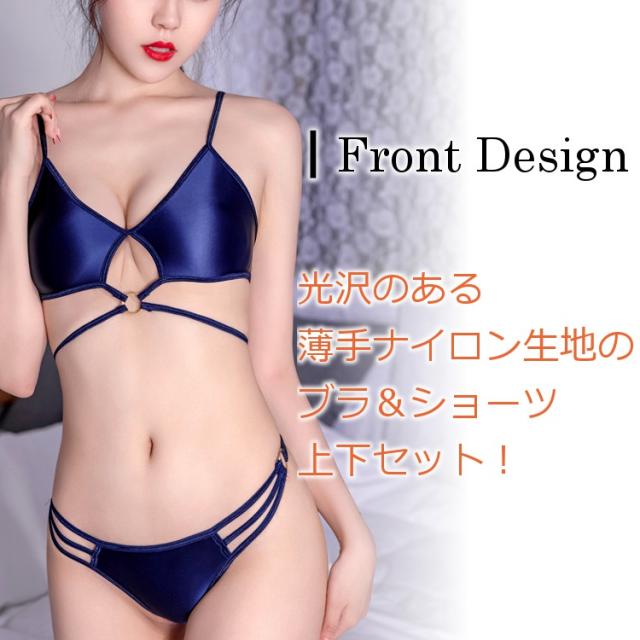 光沢のある素材を使用したセクシーブラ&ショーツ。