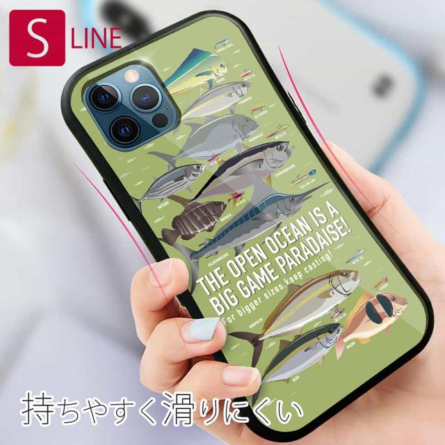 S-LINE ケース iPhone13 mini iPhone13 Pro Max iPhone12 Pro iPhone11 Pro iPhoneXs iPhoneXR Xperia 5 III Xperia 10 III Pixel 5a AQUOS sense6 釣り 魚 ルアー FISH MAN BIG GAME PARADAISE! グリーン