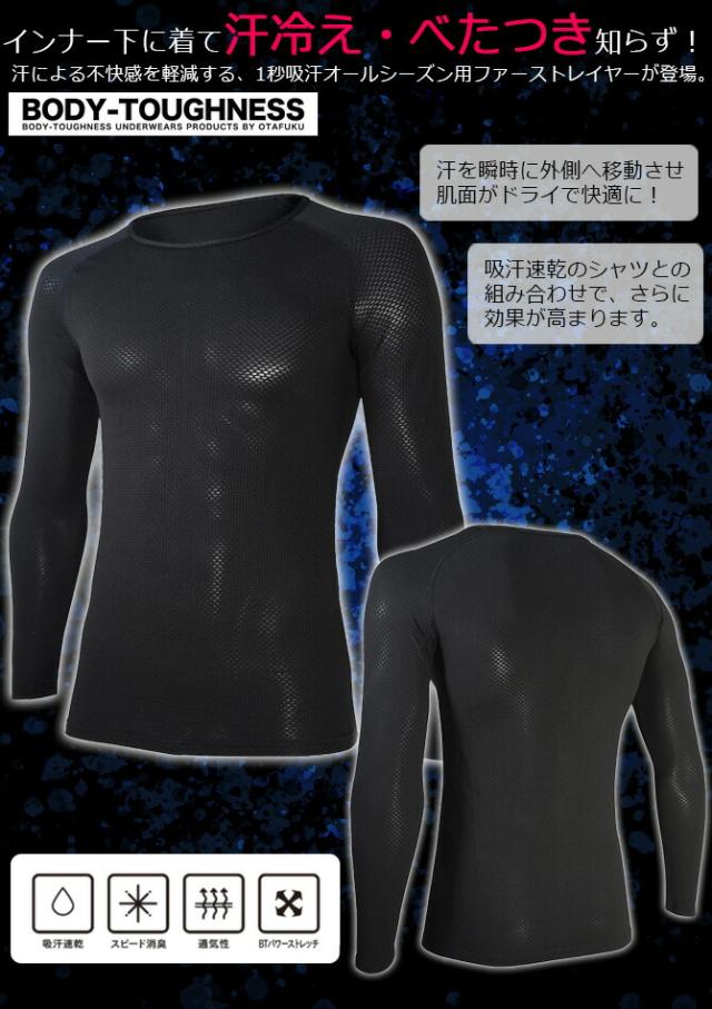 【2点までネコポス可】BT デュアル3Dファーストレイヤーロングスリーブクルーネックシャツ JW-522 BODY TOUGHNESS ボディタフネス おたふく手袋 メンズ オールシーズン 吸汗 速乾 通気性 消臭 ストレッチ