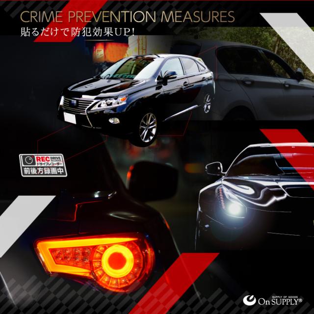 防犯 反射ステッカー 「ドライブレコーダー 前後方録画中」 白 かっこいい 煽り運転抑止 OS-441 オンサプライ(On SUPPLY)